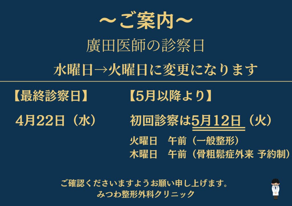 廣田医師 診察日変更のお知らせ