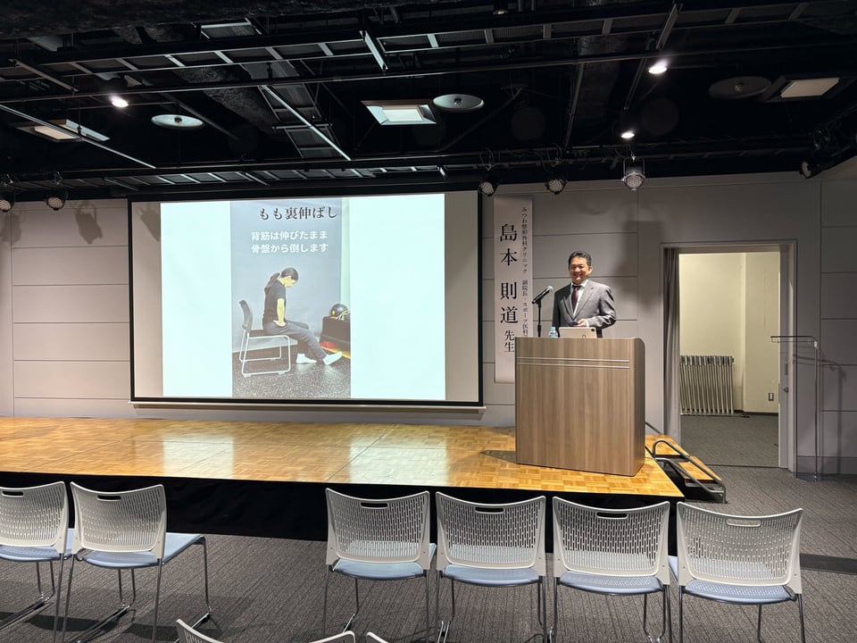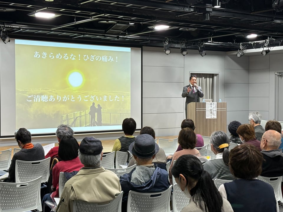講演では、ひざの痛みが起こる仕組みや、生活の中でできる予防の工夫、そして近年注目されている治療の考え方について、最新の知見を交えながらわかりやすく解説しました。